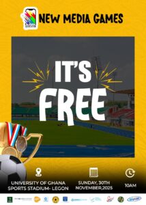 The New Media Association of Ghana (NMAG) is gearing up for the highly anticipated New Media Games 2025, scheduled to take place on Sunday, 30th November 2025, at the University of Ghana Stadium, Legon.